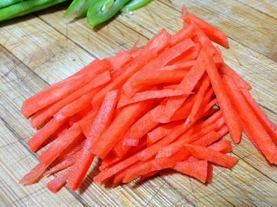 胡萝卜去皮切丝(我切的有点大,应该切的越细越好看)。