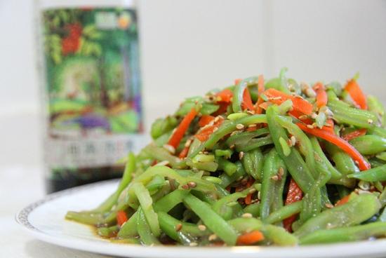 主料:四季豆10 根,白芝麻适量,胡萝卜半根,辅料:酱油适量,陈醋适量,糖适量,盐适量,香油适量。